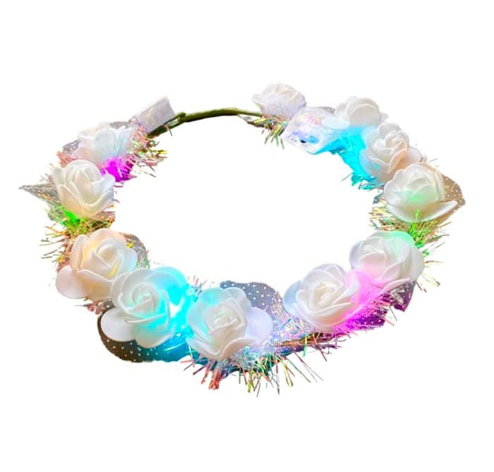 זר פרחים לראש לד עם פרחים לבנים 3 מצבי לד