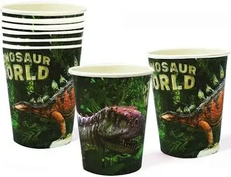 חבילה של 8 כוסות נייר חם/קר השייכות למסיבת דינוזאורים!