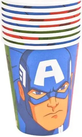 חבילה של 8 כוסות פלסטיק השייכות למסיבת הנוקמים ! תכולה: 200 מ”ל