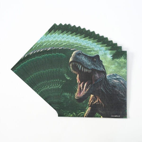 יום הולדת דינוזאורים איזו מסיבה! ירוק גדול שאוכל הכל, מפחיד את כולם ועושה בלגן. דינוזאור חמוד על מפית מסיבה פשוט חגיגה