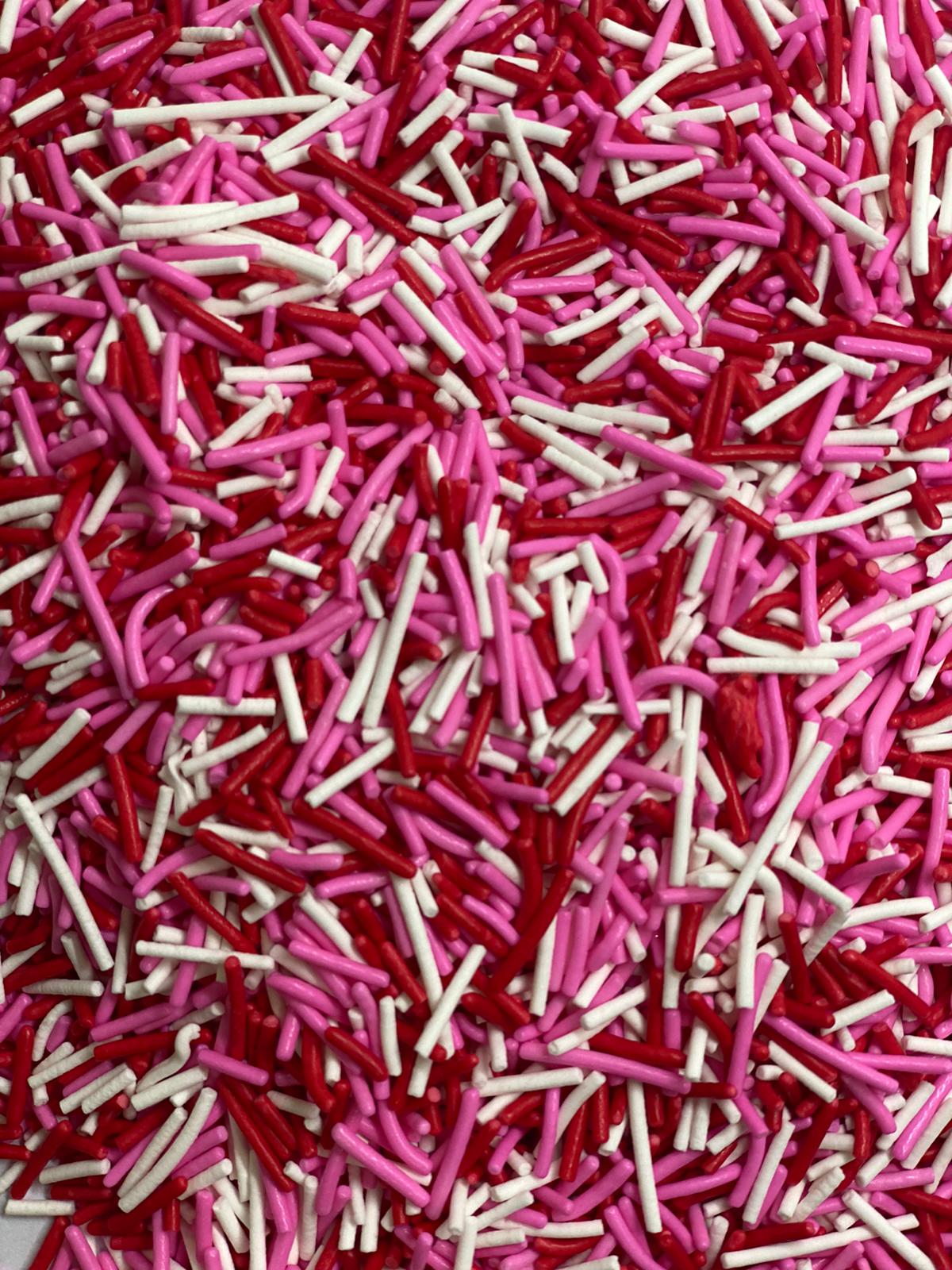 סוכריות מיוחדות ואיכותיות לקישוט עוגות, עוגיות וקאפקייקס בצבעי ורוד, אדום ולבן כמות: 120 גרם
