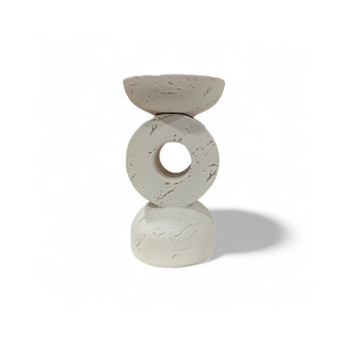 פמוט דקורטיבי עשוי אבן טרוורטין טבעית.