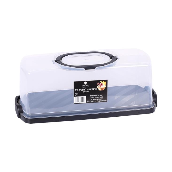 מארז יוקרתי לעוגה מלבנית ארוכה, עשוי מפלסטיק איכותי ומבריק, שחור שקוף