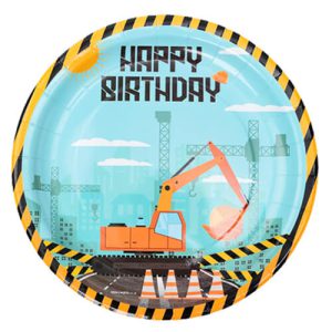 צלחות נייר קטנות בעיצוב טרקטורים כחלק ממסיבת טרקוטרים מושלמת. כאן בונים 8! גודל: 17 ס”מ