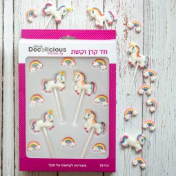 מארז קישוטי עוגה על מקל - חד קרן צבע