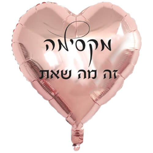 בלון הליום לב רוז גולד עם הכיתוב מקסימה זה מה שאת