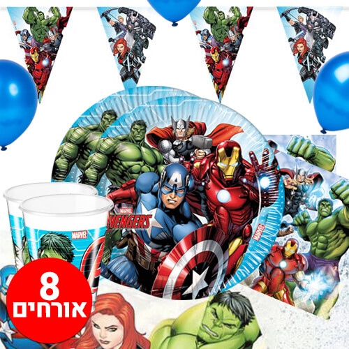חבילת יום הולדת בעיצוב הנוקמים המתאימה ל8 אורחים