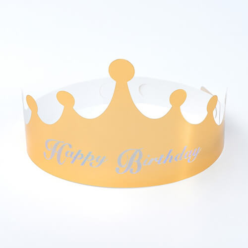 כתרים מקרטון בצבע זהב מטאלי עם הכיתוב Happy Birthday