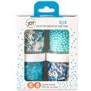 מארז סוכריות לקישוט בגווני כחול המארז כולל: 4 קופסאות סוכריות מגוונות לקישוט עוגות ודברי מאפה. משקל המארז: 161 גרם.