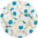 מרשמלו בצורת פרחים בצבע כחול עם עלי כותרת בצבע לבן