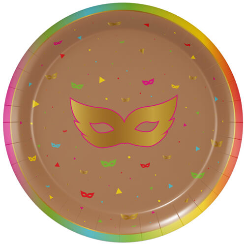 צלחות נייר גדולות עם עיטור מסיכה, מושלם לפורים