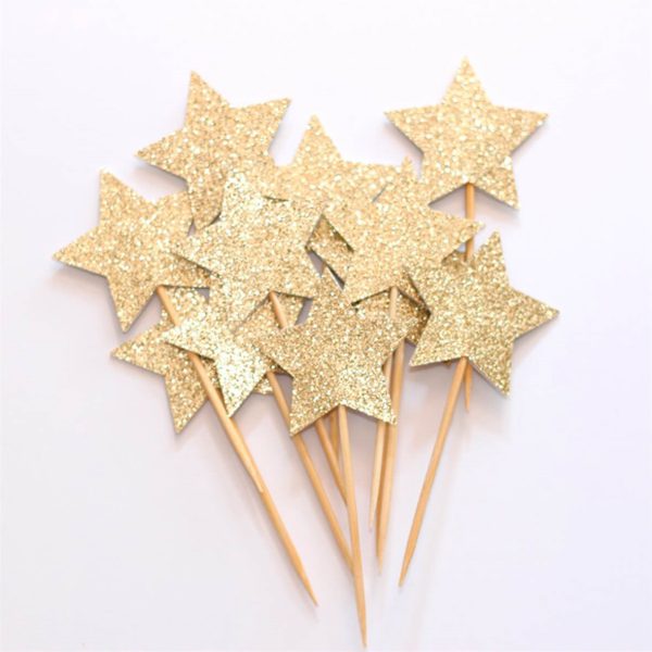קיסמים כוכבים בצבע כסף מנצנץ חבילת 12 יחידות
