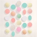 6 קישוטי תלייה העשוי מחוטים ואליו מחוברים עיגולי נייר בגוון פסטל מטאלי