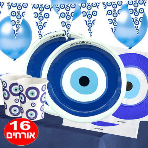 חבילת מסיבה מושלמת 16 אורחים בעיצוב עין יוונית הכוללת: