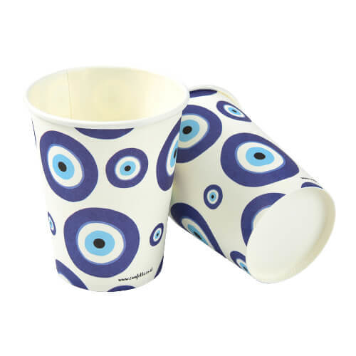 16 כוסות נייר חם/קר עין יוונית
