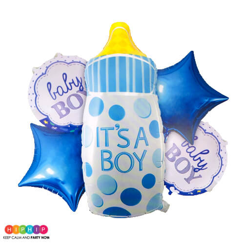 2 בלוני כוכב כחול 2 בלוני BABY BOY בלון בקבוק IT’S A BOY