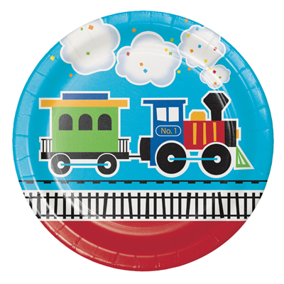 חבילה של 8 צלחות נייר גדולות השייכות למסיבת בדרכים!