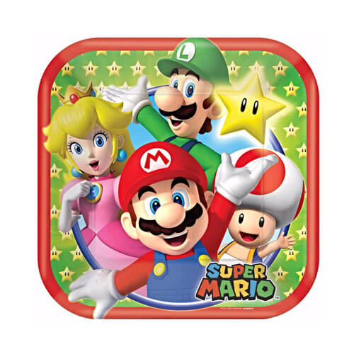 צלחות נייר קטנות מרובעות בקונספט סופר מריו גודל: 17 ס”מ כמות: 8 צלחות